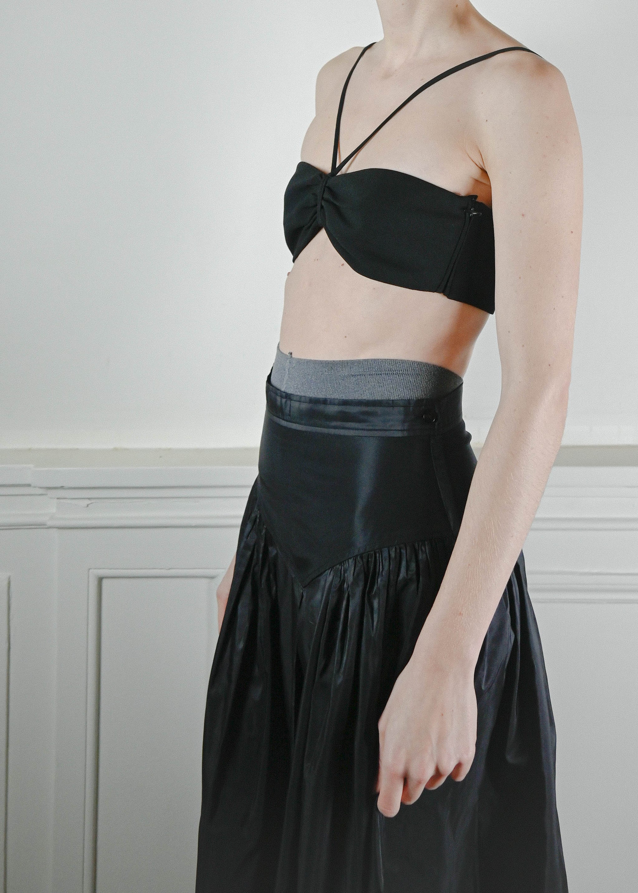 Armani bralette made in a mix of cotton and viscose fabric for a comfortable stretch, cross front straps and zip in the back