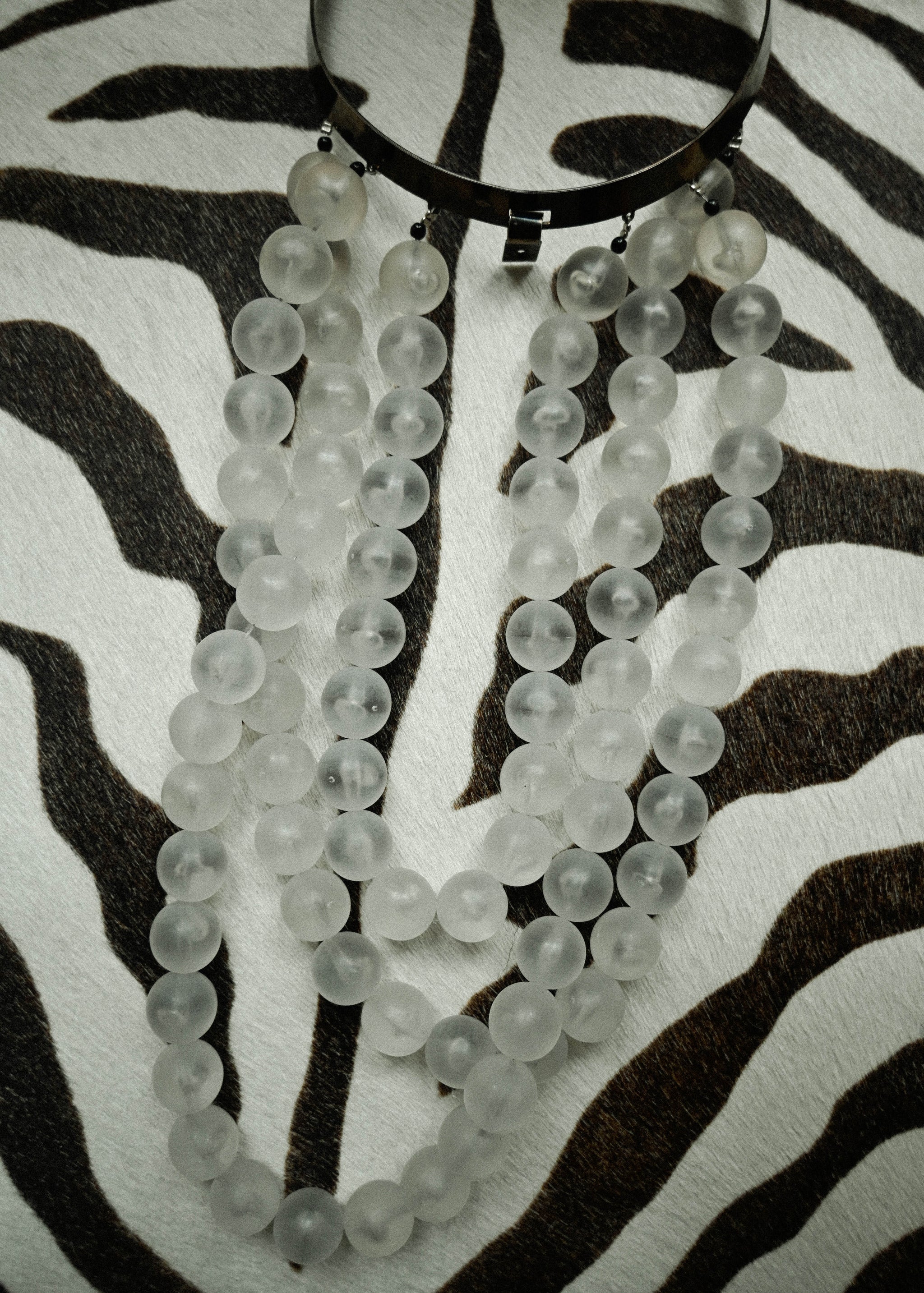 METAL CHOCKER NECKLACE WITH A THREE LAYERS OF FOGGY BEADS MADE IN RESIN, AJUSTABLE CLASP