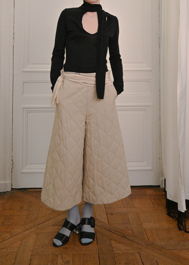 QUILTED PANTS MADE IN A MIX OF COTTON FABRIC WITH INTERIOR LINING, A TRIANGULAR CULOTTE DESIGN WITH POCKETS AND CLOSED WITH A DISCREET ZIP