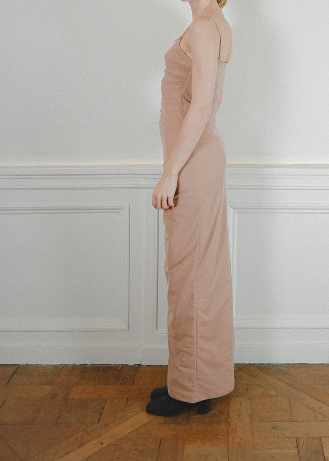 MADE IN A BEIGE FABRIC WITH A SUBTLE GOLDEN SHIMMER