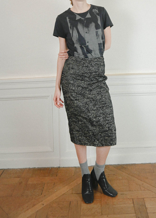 THICK WOOL TWEED WITH A "MOUCHETÉ" EFFECT, ZIPPABLE IN THE BACK OR FRONT