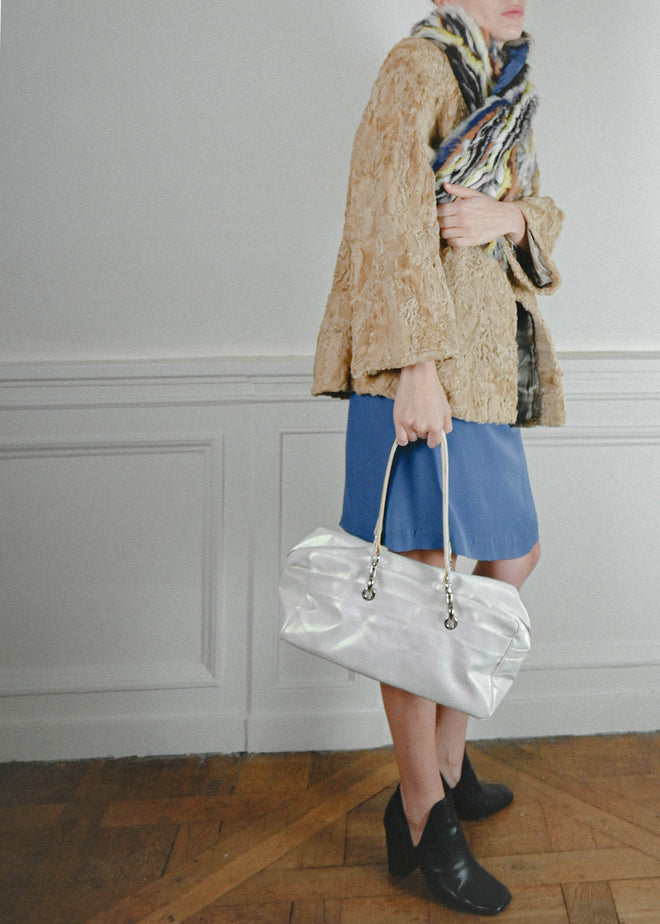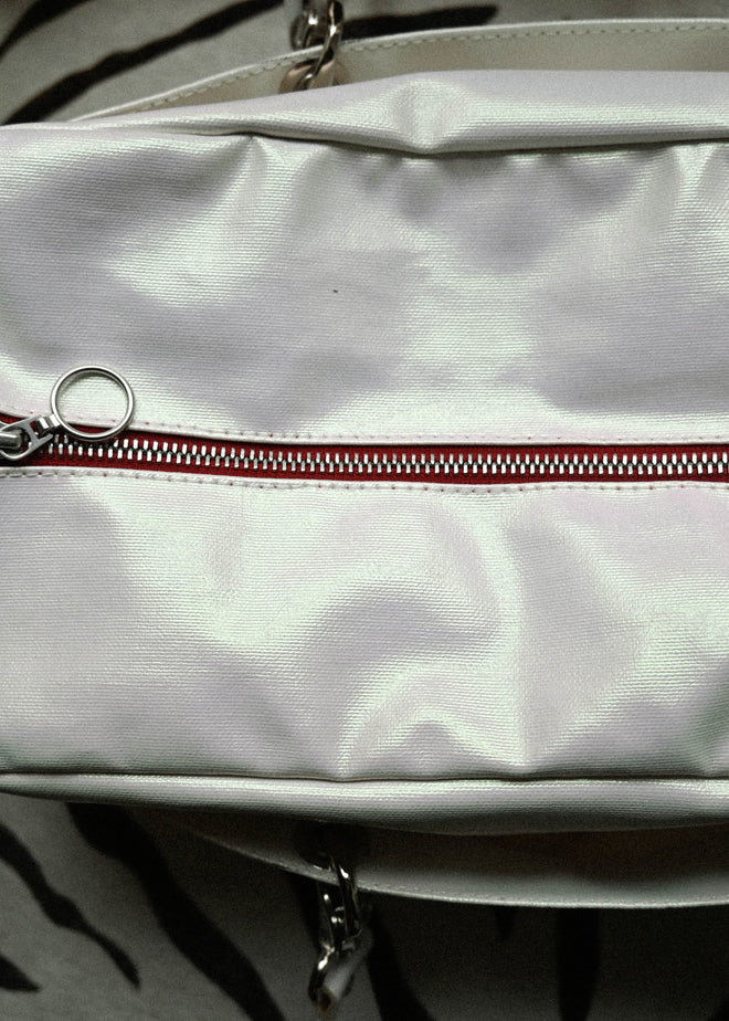 WHITE BAG WITH A LIGHT PEARLY HUE AND GLAZE FINISH