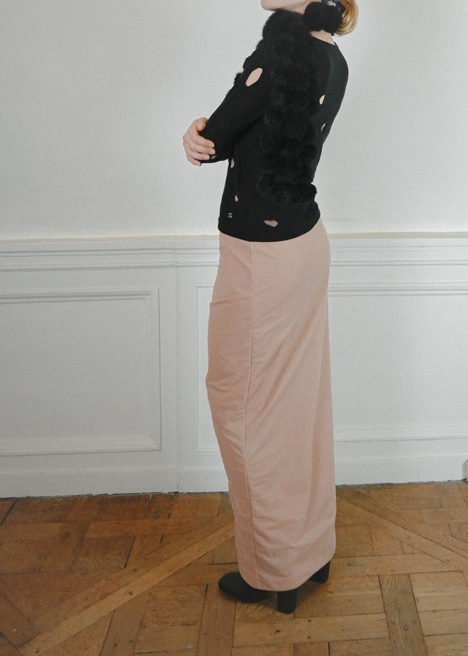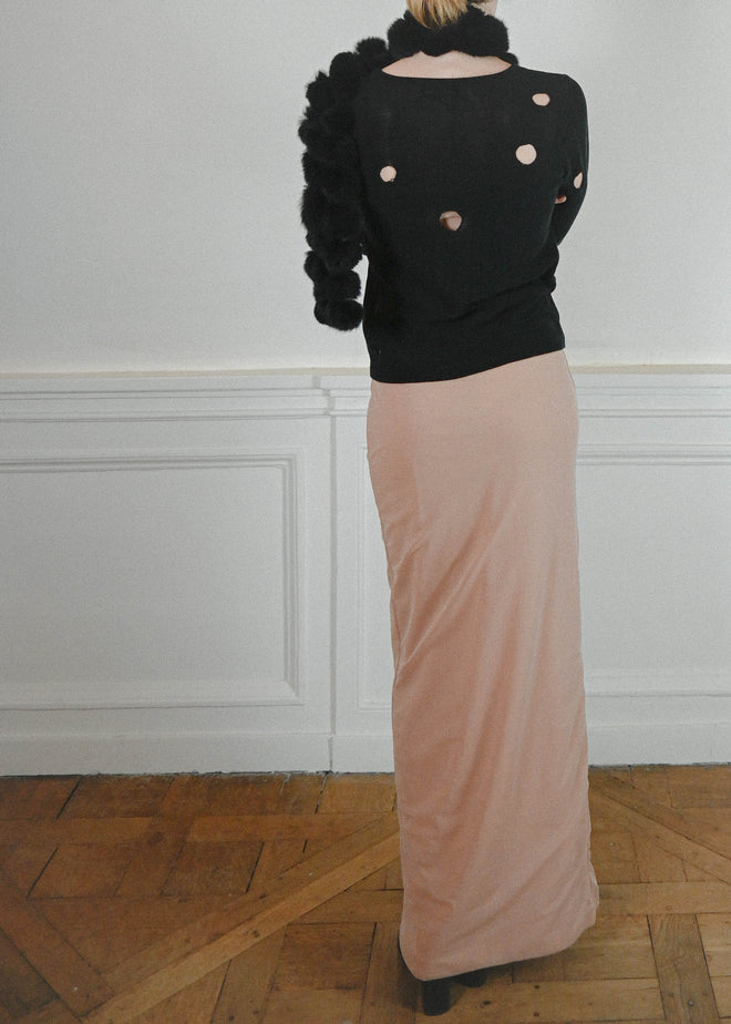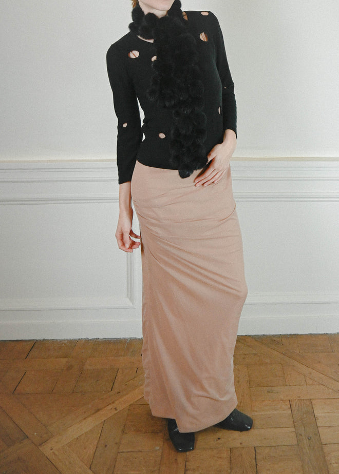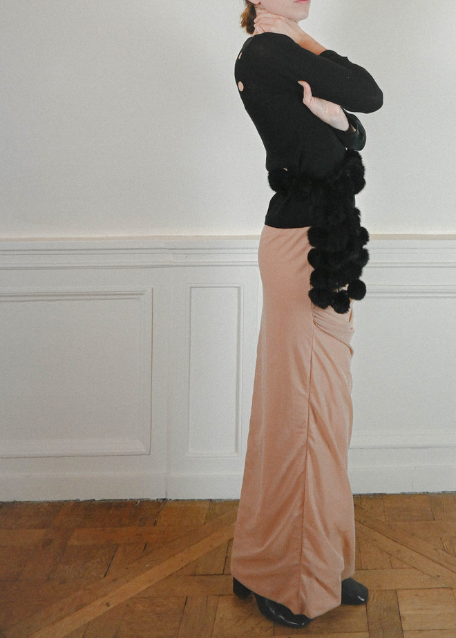 BLACK RABBIT SCARF WITH SMALL POMPOMS