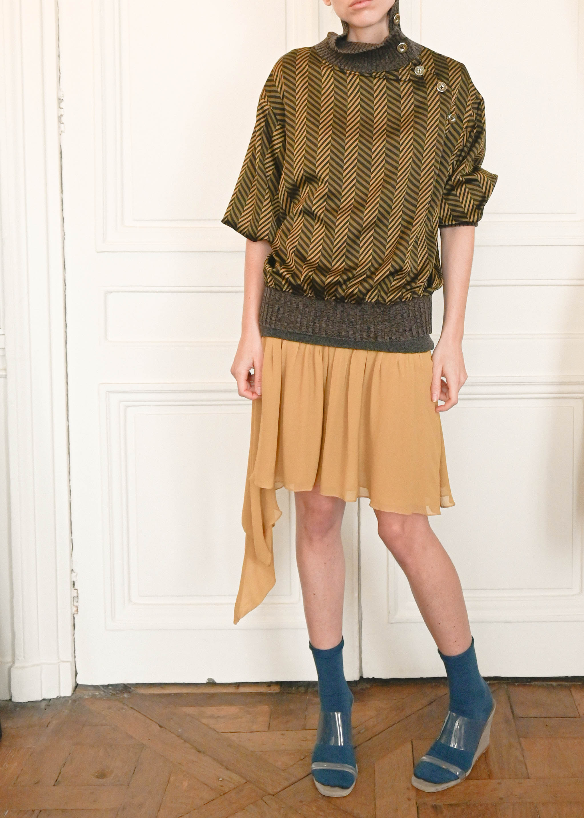 SILK AND WOOL RUFFLE SKIRT WITH AN ASYMMETRIC DETAIL