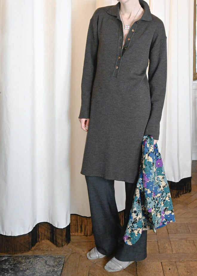 YVES SAINT LAURENT WOOL BROWN BUTTON DOWN DRESS