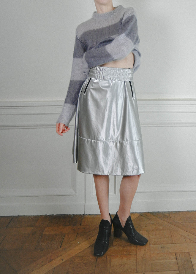 ATHLEISURE SPACE SKIRT WITH ZIP UP POCKETS AND A HIGH WAISTED ELASTIC WAISTBAND. SLIGHT ALTERATION AT THE WAIST.SIZE FR36